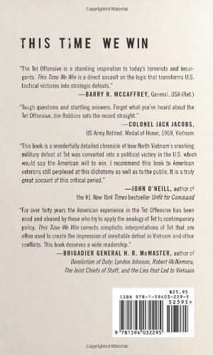 In This Time We Win, James S. Robbins at last provides an antidote to the flawed Tet mythology that continues to shape the perceptions of American military conflicts against unconventional enemies and haunt our troops in combat. Indeed, America’s enemies recognize and find inspiration in the prevailing Tet narrative.